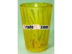 hem are perfumed. One of the great things about using votivecandles for a wedding is that you can make them yourself so easily.A grouping of votive candles down the centre of the tables, make alovely table centre piece. They can be kept in the traditionalwhite or there can be an introduction of the bridesmaids'' colorswith the candle wax or the candle holders. Alternatively thecandles could be white and some small flowers included in thecentre piece that reflect the color of the bridesmaids. Either way,they look beautiful. They can be use for table centre pieces or asdecorations to build atmosphere. And some other uses on Birthday Celebrations, Pool Parties, andDinner Parties etc.T-Light Votive Made of Glass With Yellow Color Finish