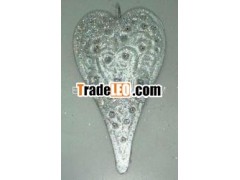 Hanging Heart Made of Iron With Silver Gliter Finish