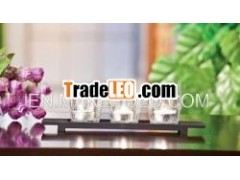 es down the centre of the tables, make a lovely table centre piece.They can be kept in the traditional white or there can be anintroduction of the bridesmaids'' colors with the candle wax or thecandle holders. Alternatively the candles could be white and somesmall flowers included in the centre piece that reflect the colorof the bridesmaids. Either way, they look beautiful. They can beuse for table centre pieces or as decorations to build atmosphere.And some other uses on BirthdayCelebrations, Pool Parties, and Dinner Parties etc.Tray With Three Votive Made of Wood & Glass With Black Color Finish